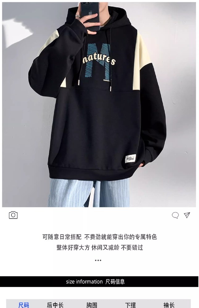 购买品牌:佐菲利尺码:M L XL 2XL 3XL面料分类:其他图案:字母/数字/文字领型:连帽衣门襟:套头颜色:黑色 白色 蓝色 23128黑色 23128卡其袖型:落肩袖货号:LJZKKK23130CYL细分风格:潮基础风格:青春流行适用季节:春秋冬上市年份季节:2023年秋季厚薄:常规适用场景:休闲版型:宽松型服装款式细节:印花适用对象:青少年...