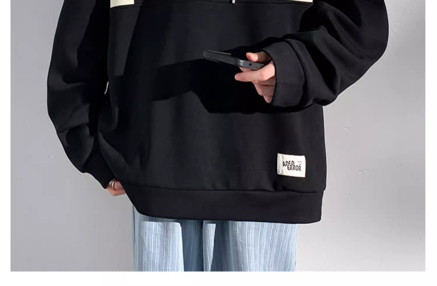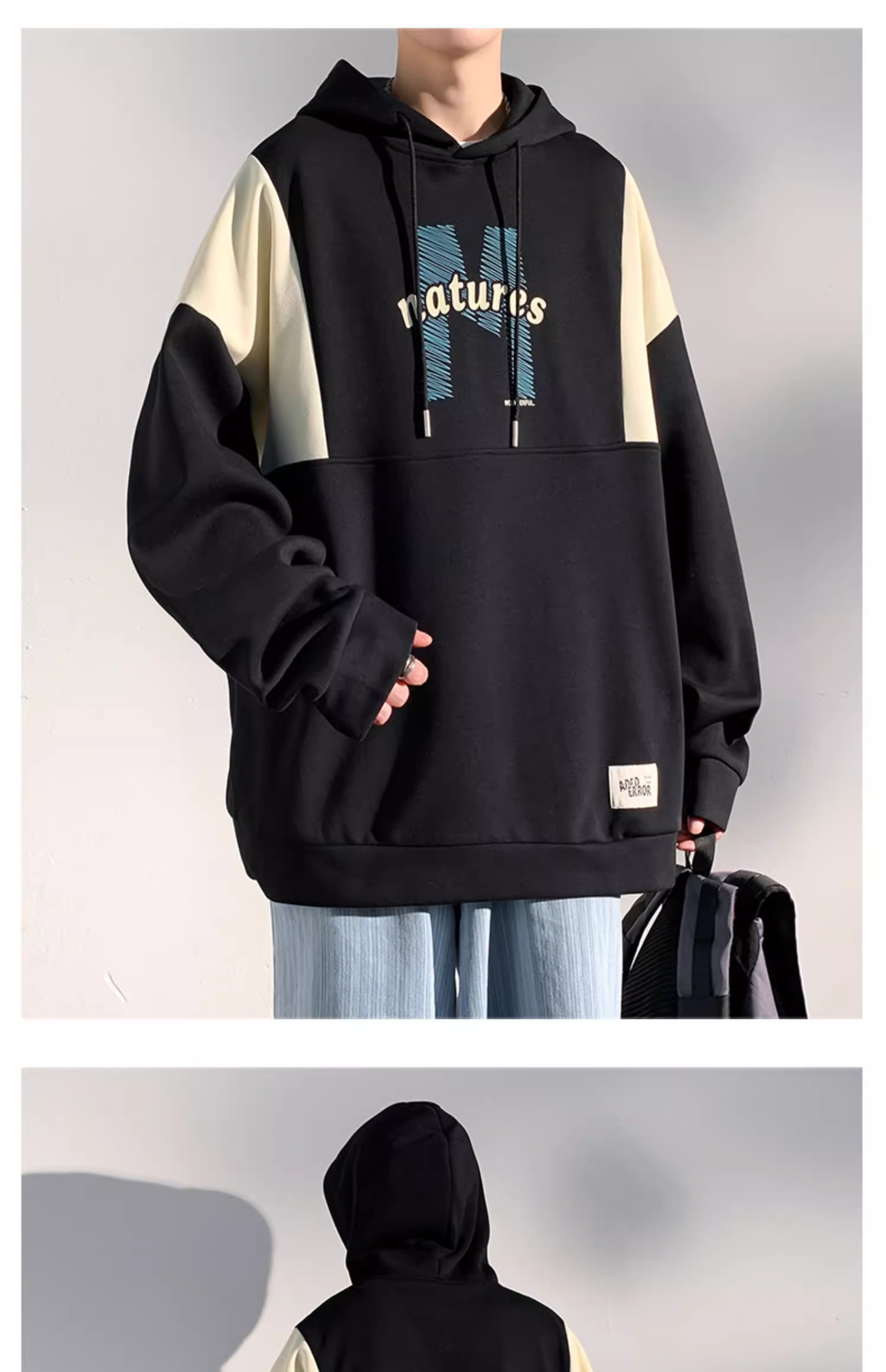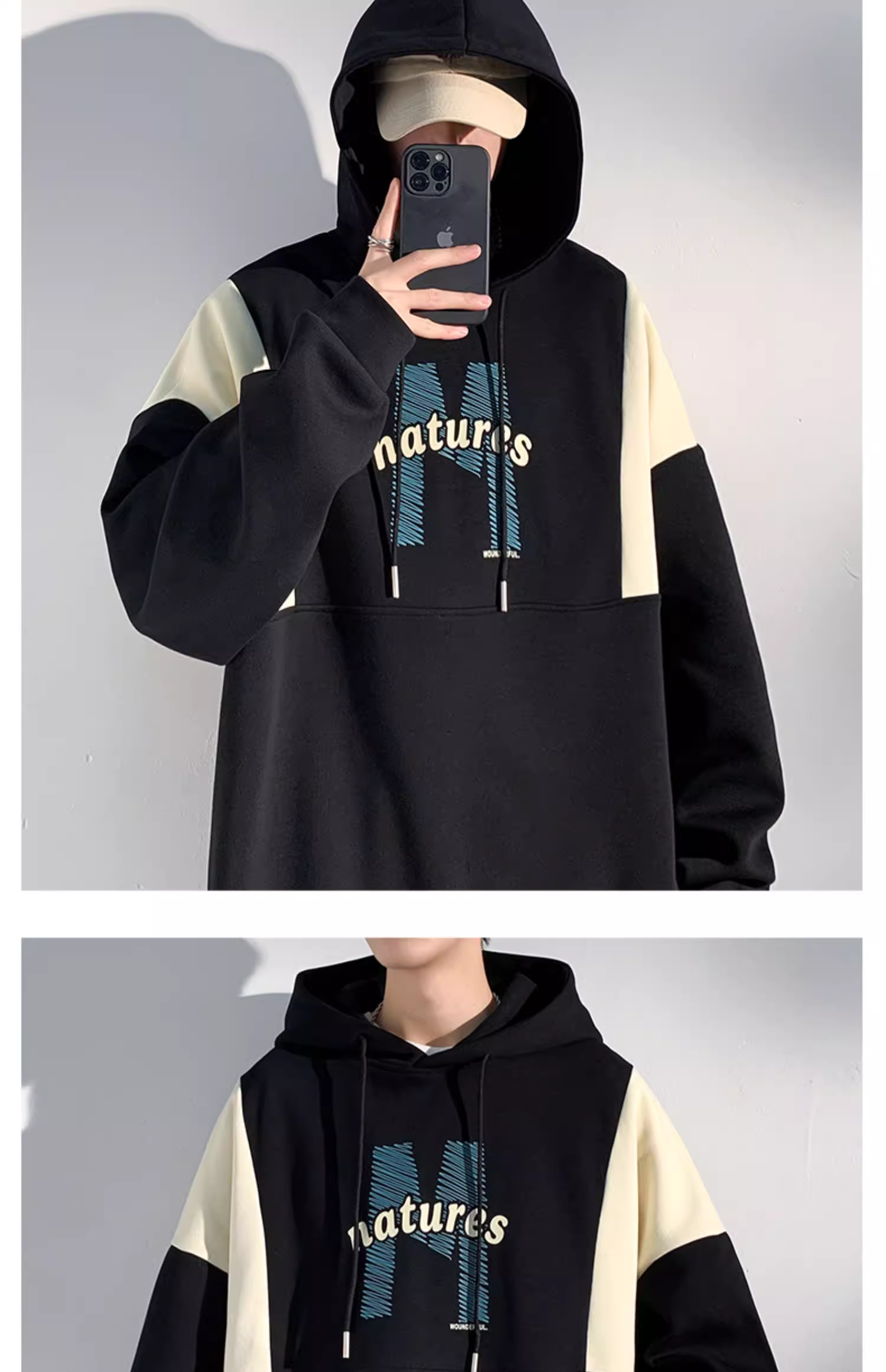 美式重磅连帽卫衣男秋冬季宽松拼接长袖打底衫青少年男装上衣外套